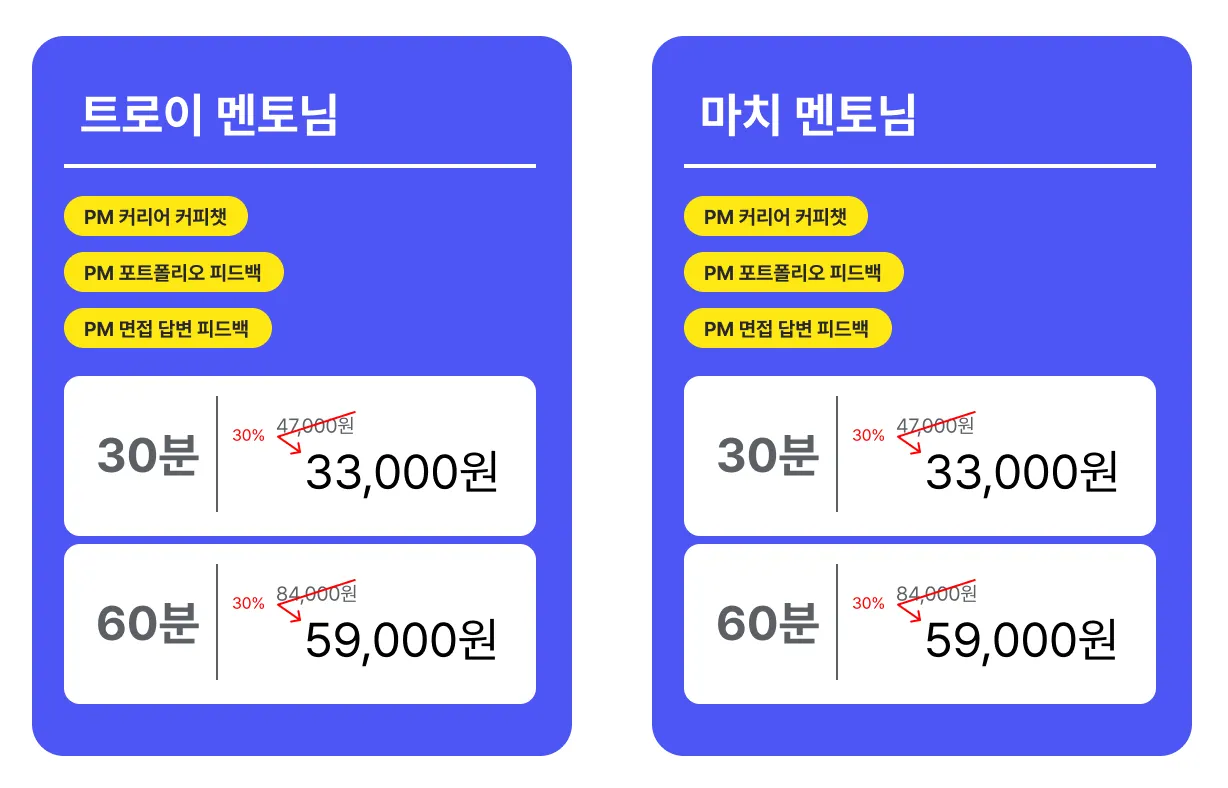 많은 분들이 기다려 주셨던 PM/PO/서비스 기획 직무 1:1 멘토링 서비스가 드디어 오픈되었습니다